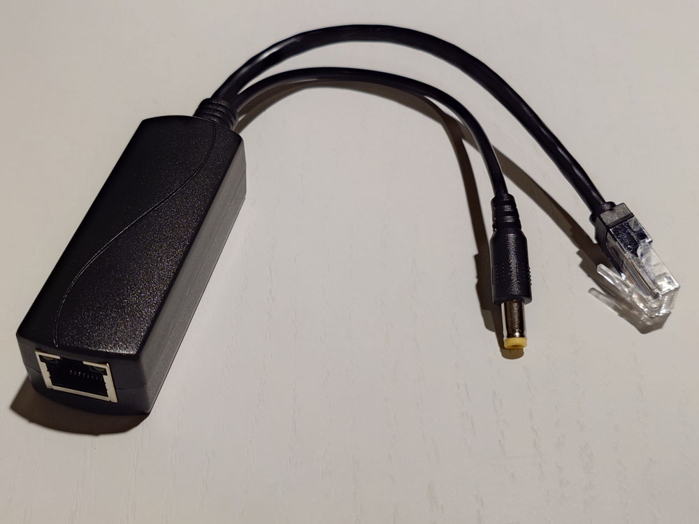 AmazonでPoEスプリッターをざっと眺めてみたのですが、PoEスプリッターのDCプラグ部分が7.4mm×5.0mmのものはなさそうでした。(なので5.5mm×2.1mmのものを購入しているわけですが)